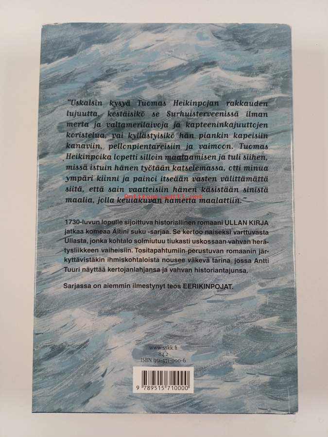 Ullan kirja - romaani, 2003. 1730-luvun lopulle sijoittuva historiallinen romaani Ullan kirja jatkaa komeaa Äitini suku -sarjaa.