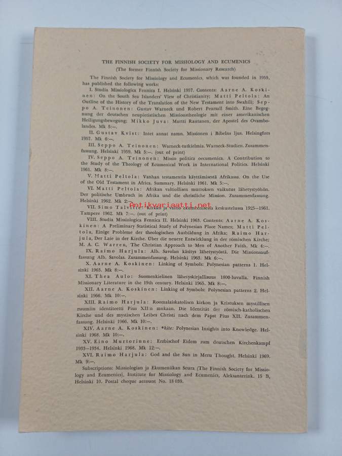 Merkinnät: omistajamerkintäSarja: Missiologian ja ekumeniikan seuran julkaisuja 16Asiasanat: jumalat, aurinko, jumalakäsitykset, etniset uskonnot, gudar, taivaankappaleet, himlakroppar, gudsuppfattningar, etniska religioner, solen