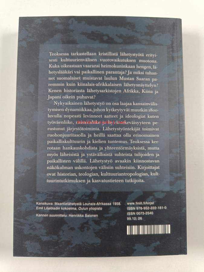 Muu(t) tekijä(t): Olli Löytty, Seija Jalagin ym.Sarja: Historiallinen arkisto 131Asiasanat: historia, lähetystyöntekijät, lähetystyö, kulttuurihistoria, evankelioiminen, kansainvälistyminen, islam, kristinusko, vuorovaikutus, monikulttuurisuus, rotusyrjintä, kulttuurienvälisyys, kulttuurikosketukset, monitieteisyys, paikalliskulttuuri