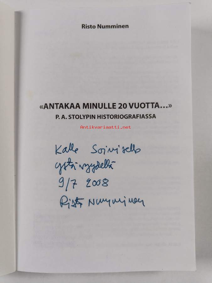"Antakaa minulle 20 vuotta..." : P. A. Stolypin historiografiassa (signeerattu, tekijän omiste)