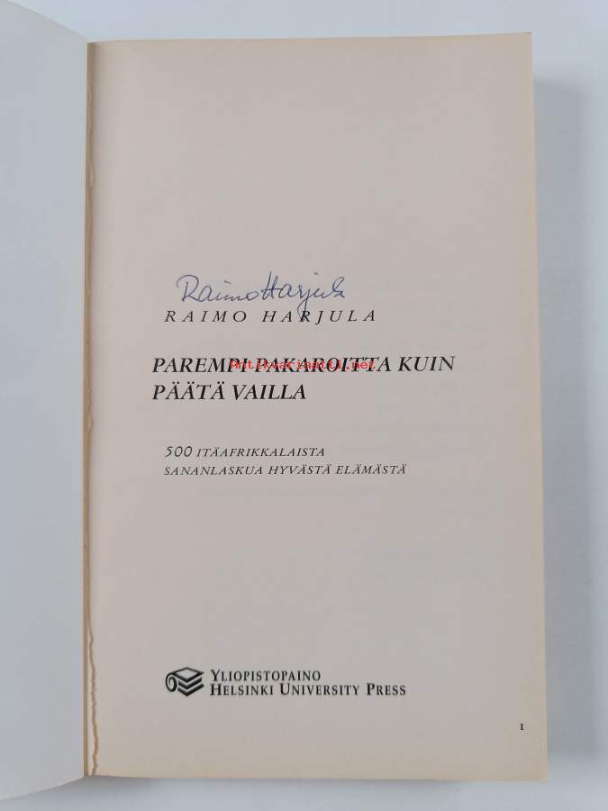 Parempi pakaroitta kuin päätä vailla : 500 itäafrikkalaista sananlaskua hyvästä elämästä (signeerattu)