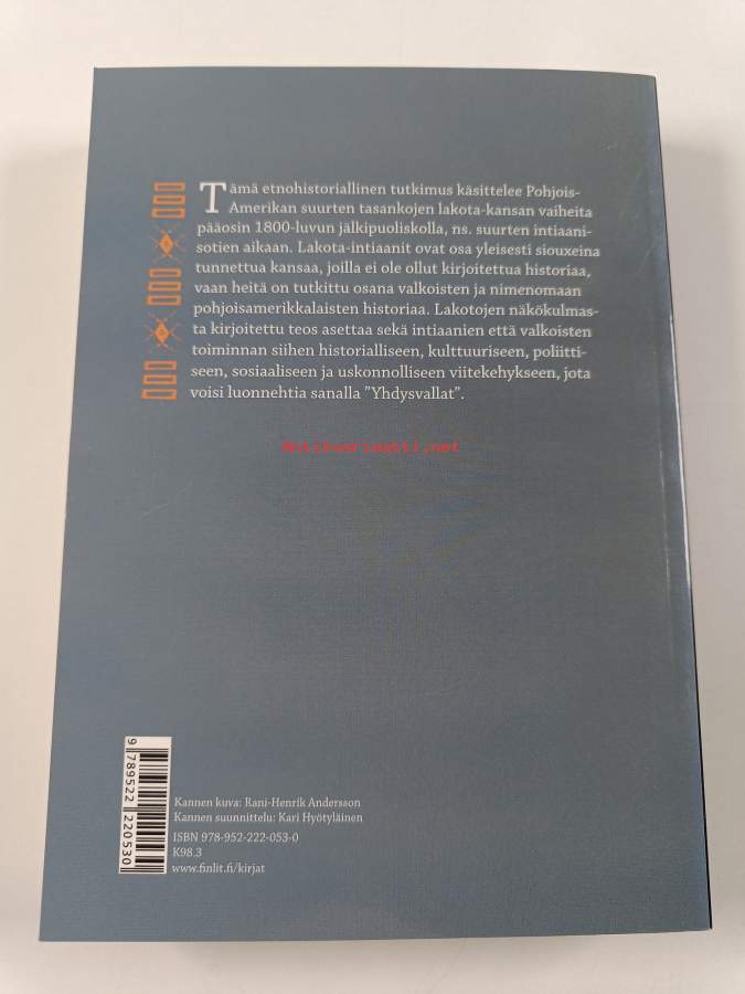 Sarja: Suomalaisen Kirjallisuuden Seuran toimituksia 1202Asiasanat: intiaanit, historia, alkuperäiskansat, intiaanikulttuurit, kansat, intiaanisodat, vähemmistöpolitiikka, etniset uskonnot, etnohistoria, lakotat, siouxit