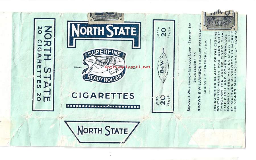 North State "Vihreä nortti" - tupakkaetiketti, avattu tuotepaketti tupakka-aski -kääre