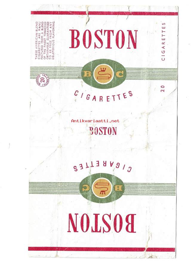 Boston - tupakkaetiketti, avattu tuotepaketti tupakka-aski -kääre