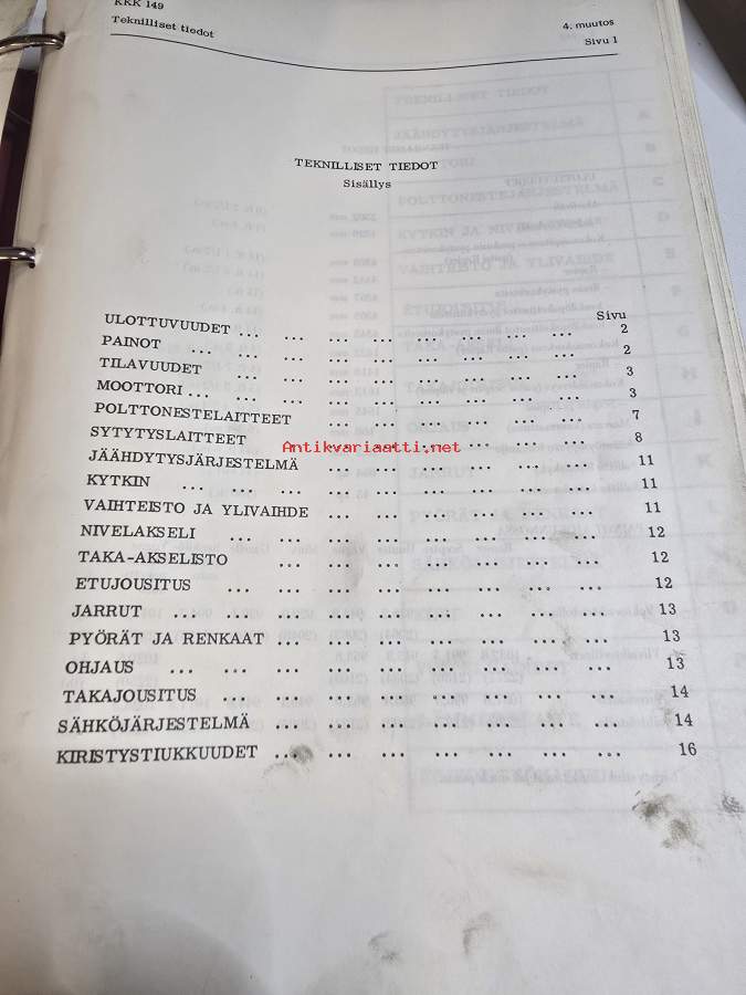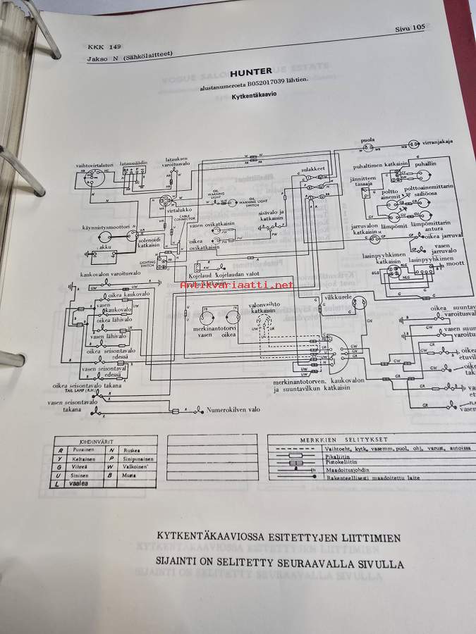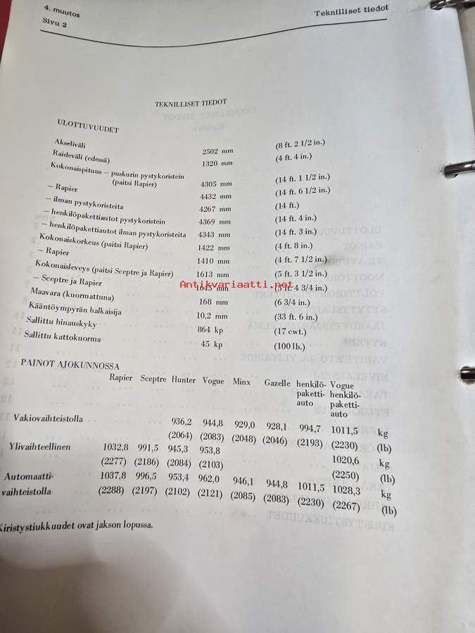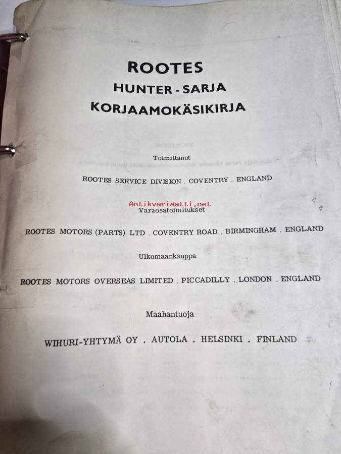 Koko 31 x 26 cm. Rootes hunter-sarja korjaamokäsikirja. kansio