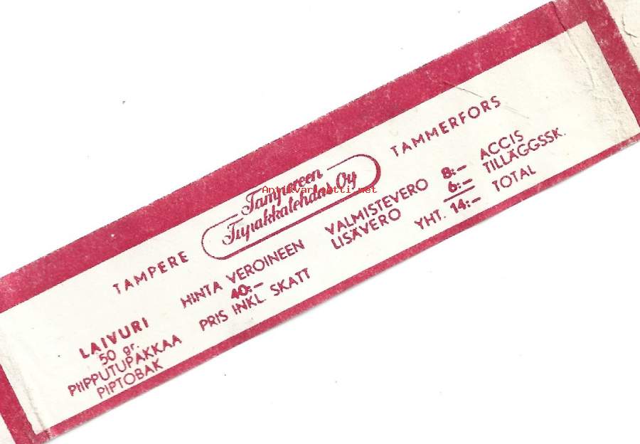 Tampereen Tupakkatehdas Tampere / Veromerkkinauha - tupakkaetiketti