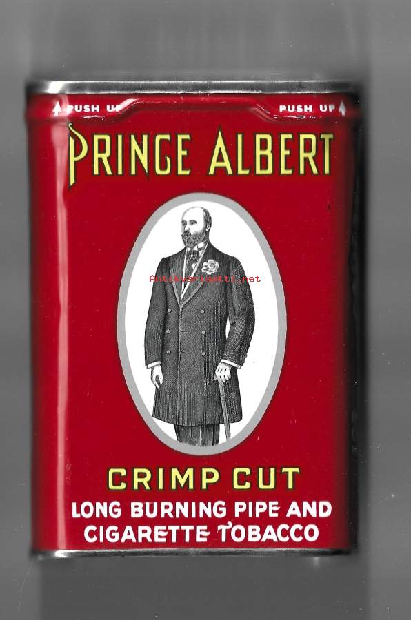 Prince Albert Crimp Cut pipe and cigarette tobacco - tyhjä tupakka-aski tupakkarasia peltiä 8x11x2 cm