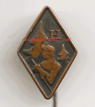 Poikien Urheiluliitto per 1933 H = hiihtomerkki 50 km hiihtoa 3-10 km erissä - neulamerkki rintamerkki