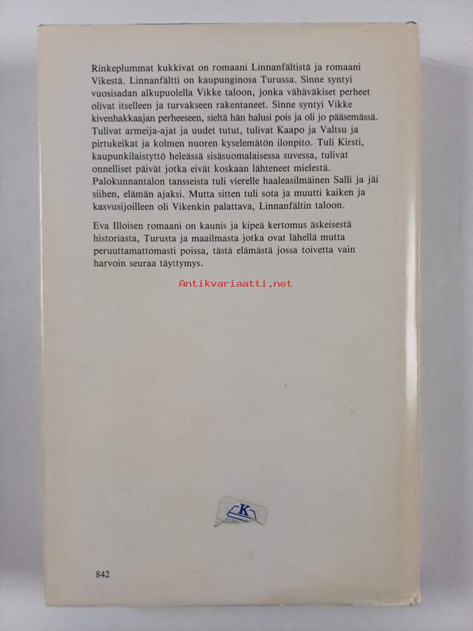 Hyvä. Hieman kulumaa kansissa, sidos hieman näkyvissä yhdellä aukeamalla, takana hintalapun jäämää. Kansipaperin kunto: jonkin verran kulumaa/pienoisia repeämiä
