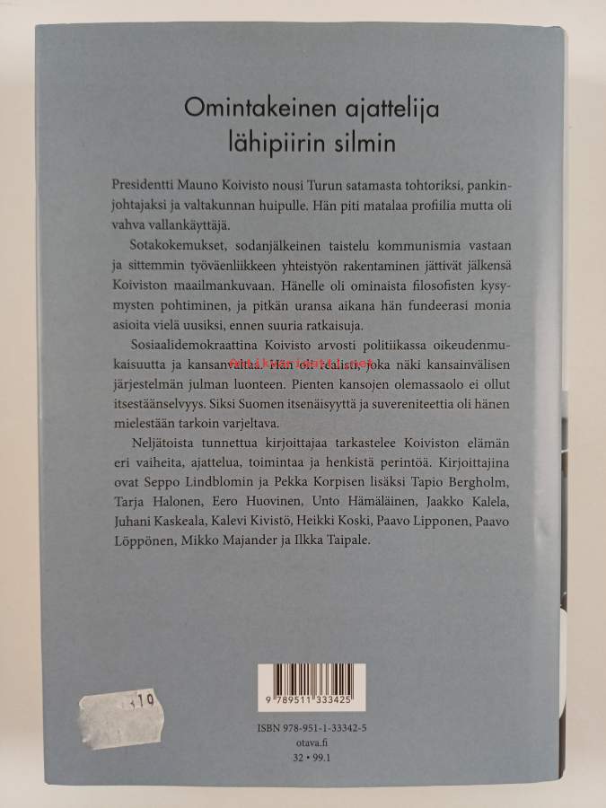 Muu(t) tekijä(t): Mikko Majander, Seppo Lindblom ym.Asiasanat: poliitikot, poliittinen historia, presidentit, sosiaalidemokraattiset puolueet, merkkihenkilöt, maailmankatsomus, vallankäyttö, yhteiskunnalliset vaikuttajat, tutkimustyö, uskonnollisuus, mediasuhteet, sotakokemukset, filosofian tohtorit