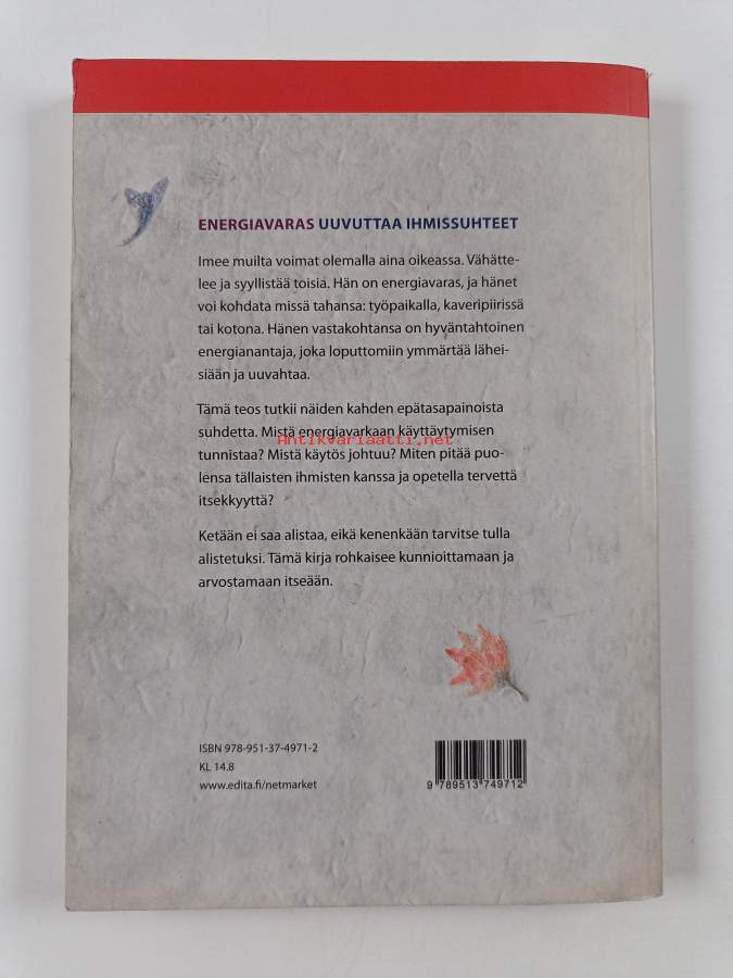 Alkuteos: Energitjuvar i familjen, i relationen och på jobbetAsiasanat: ihmissuhteet, sosiaalinen vuorovaikutus, sosiaaliset suhteet, käyttäytymismallit