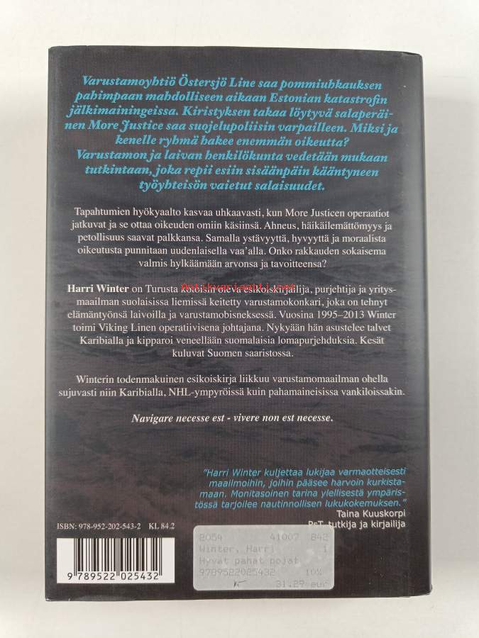Hyvä. Tarkempi kuntoluokka: K3+ ; Pienoista kulumaa kansissa, pienoista kolhua selkämyksen päissä, edessä hintalapun jäämää, takana vanha hintalappu. Kansipaperin kunto: pientä kulumaa