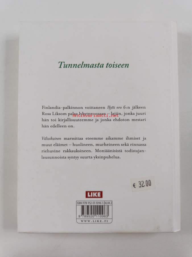 Hyvä. Hieman käytön jälkeä kansissa, takana vanha hintalappu, selkämyksessä hieman vinoutta