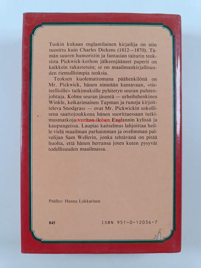 Pickwick-kerhon jälkeenjääneet paperit. 1 / Charles Dickens ; suom. Eino Palola ; kuv. Seymour ja "Phiz".