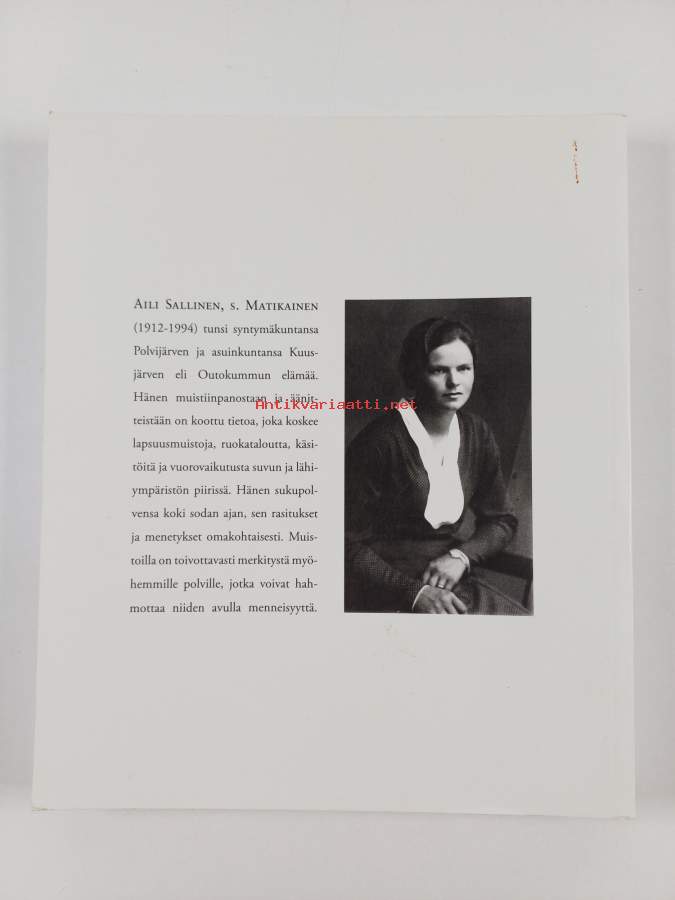 Muu(t) tekijä(t): Aira Kuronen, Pirkko Sallinen-GimplAsiasanat: historia, henkilöhistoria, käsityöt, ruokaperinne, ruokakulttuuri, sota-aika, tapakulttuuri, lapsuus, suvut, käsityöperinne, perheet, kansanlääkintä, kenttäposti, juhlat, perhejuhlat, muistot, personhistoria, barndom, familjer, krigstid, mattradition, familjefester, matkultur, släkter, handarbeten och hantverk (objekt), seder och bruk, folkmedicin, hantverkstradition, minnen (hågkomster), hantverk, fältpost, fester och högtider, pohjoiskarjalaiset, nordkarelare