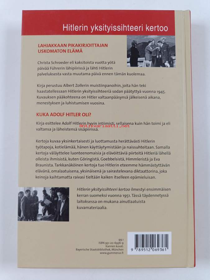 Muu(t) tekijä(t): Lotta Toivanen, Eero Tenhosaari ym.Alkuteos: Hitler privatAsiasanat: muistelmat, henkilöhistoria, poliittiset johtajat, sihteerit