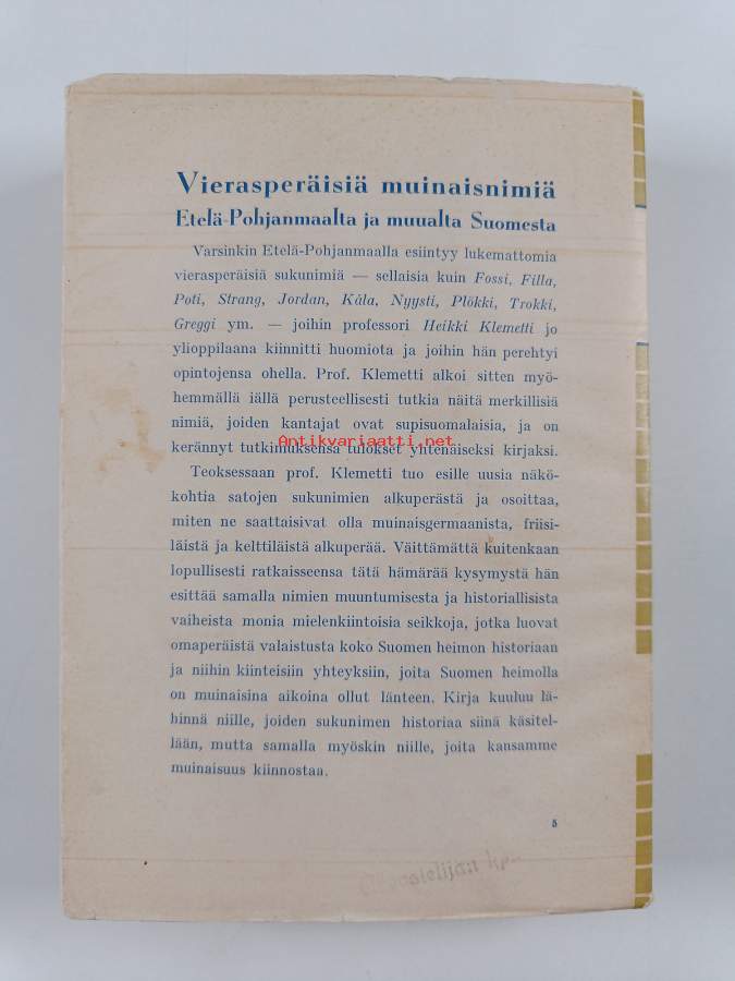 Vierasperäisiä muinaisnimiä Etelä-Pohjanmaalta ja muualta Suomesta