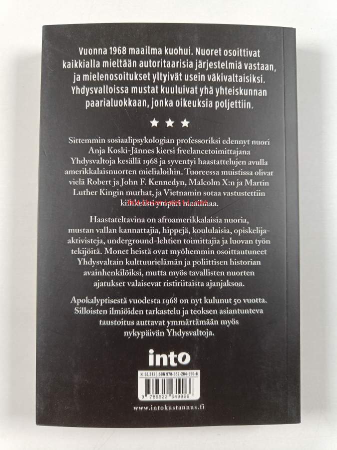 Asiasanat: historia, poliittinen historia, kansalaistoiminta, rauhanliikkeet, poliittinen osallistuminen, aktivismi, vastakulttuurit, opiskelijaliikkeet, kansalaisoikeusliikkeet, protestiliikkeet, afroamerikkalaiset, radikalisoituminen, mellakat, hippiliike, sukupolvikokemukset