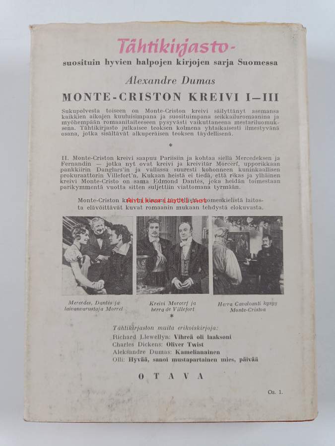 Hyvä. Tarkempi kuntoluokka: K3- ; Pientä kulumaa, selkämyksessä hieman vinoutta. Kansipaperin kunto: jonkin verran kulumaa/pienoisia repeämiä