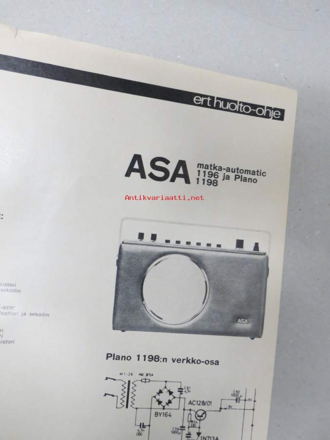 ASA 1196, 1198 ja Plano -huolto-ohje