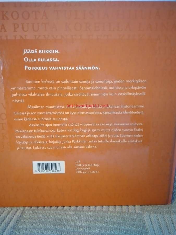 500 sanontaa ja niiden alkuperää.Asiasanat: suomen kieli, fraasit, ilmaukset- Kirje 1kg