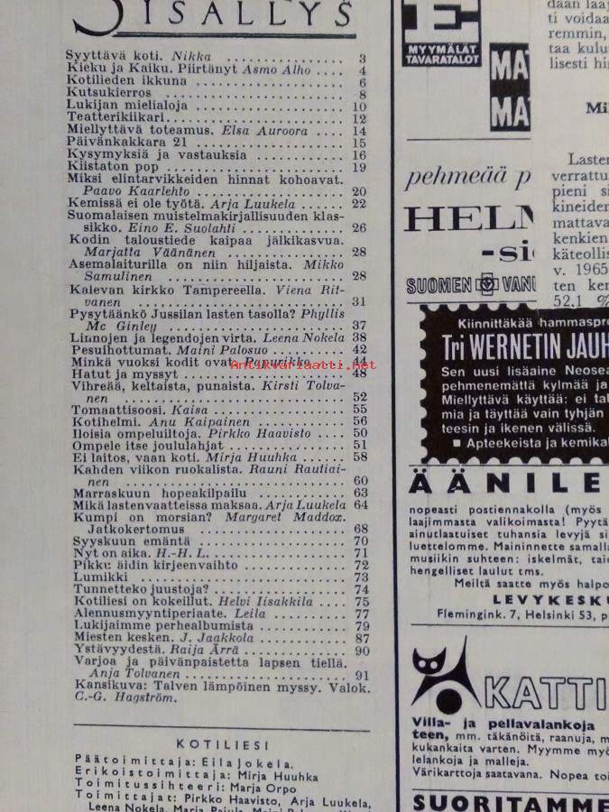 Ilmestynyt 4.11.1966,96s., sisällysluettelo kuvassa, kilpailukuponki poissa (molemminpuolin sivua mainokset)