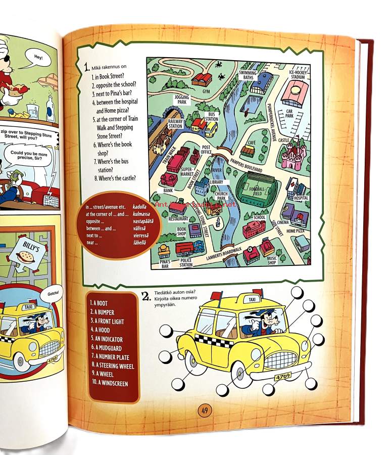 Ala- ja yläasteikäisille soveltuva englannin oppikirja, jossa kaikille tutut Ankkalinnan hahmot seikkailevat.