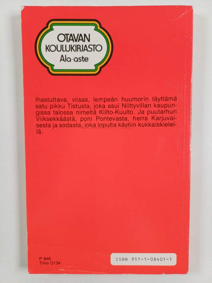Muu(t) tekijä(t): Inkeri TuomikoskiMerkinnät: omistajamerkintäSarja: Otavan koulukirjasto. Ala-asteAlkuteos: Tistou les pouces vertsAsiasanat: kasvit, sota, nuortenkirjallisuus, rauha, saturomaanit