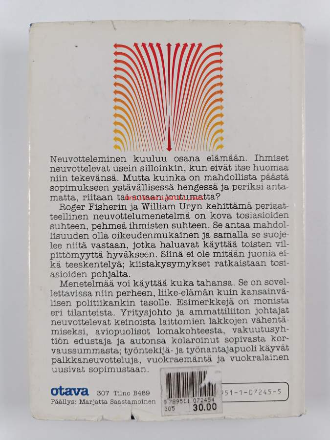 Muu(t) tekijä(t): Mirja (Suom.) Rutanen, Bruce (toim.) PattonAlkuteos: Getting to yes. Negotiating agreement without giving in