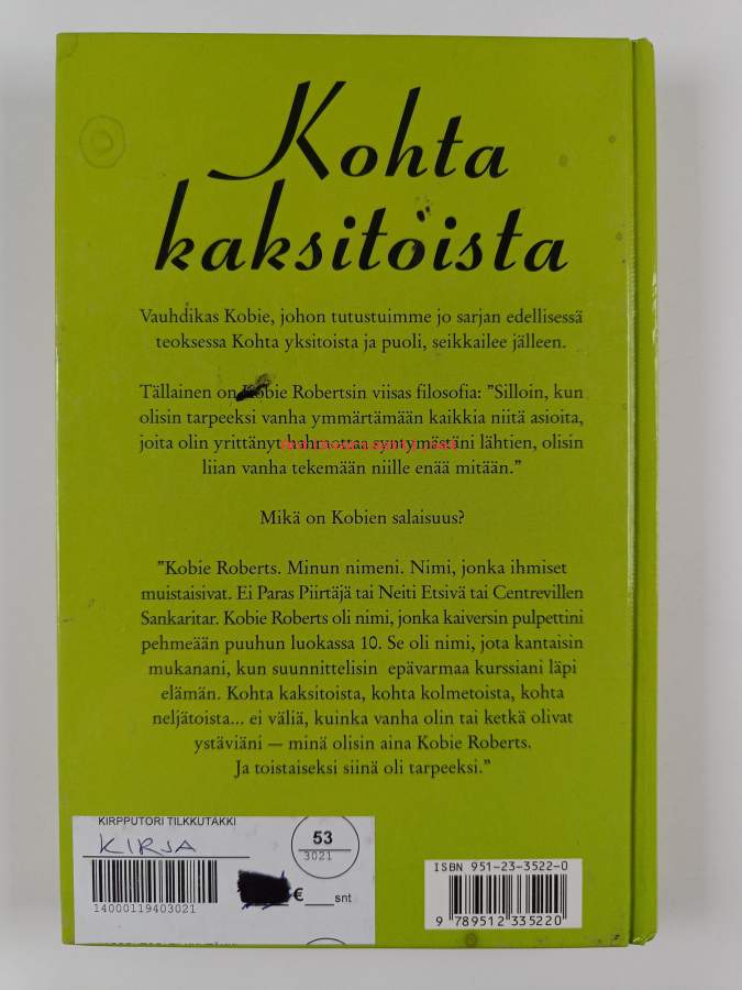 Tyydyttävä. Tarkempi kuntoluokka: K2+ ; Hieman kulumaa, hieman kolhua kansissa, pienoista tahraisuutta, selkämyksessä hieman vinoutta, takana vanha hintalappu