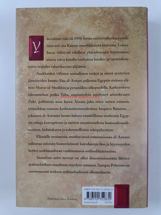 Muu(t) tekijä(t): Sampsa PeltonenAlkuteos: Imarat Ya'qūbyanAsiasanat: Egypti, Kairo