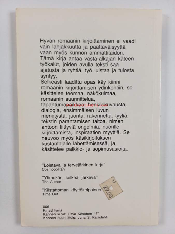 Muu(t) tekijä(t): Liisi (suom.) HuhtalaMerkinnät: omistajamerkintäAlkuteos: The craft of novel-writingAsiasanat: oppaat, kirjoittaminen, kaunokirjallisuus