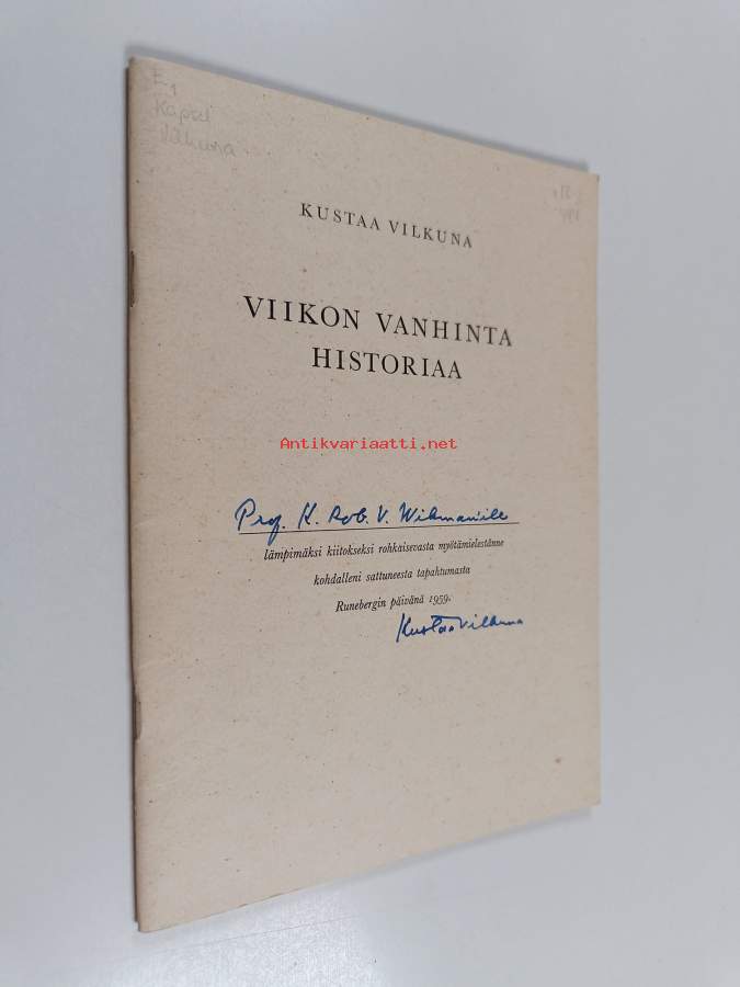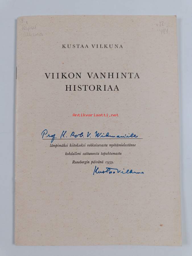 Viikon vanhinta historiaa (signeerattu, tekijän omiste)