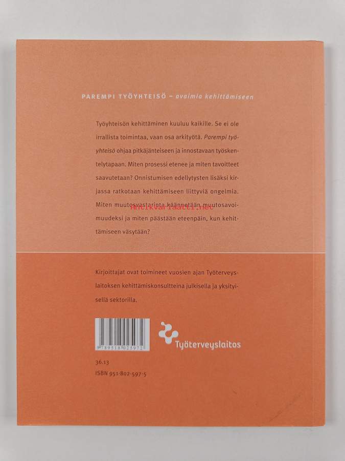 Muu(t) tekijä(t): Leena MultanenAsiasanat: työterveys, työelämä, kehittäminen, työyhteisöt, muutos, hyvinvointi, vuorovaikutus, työhyvinvointi, keskustelu, innovatiivisuus, organisaatiokulttuuri, työilmapiiri, työpaikkakulttuuri, communication, Personnel management, Occupational Health, Organizational Innovation, Workplace, Organizational Culture, Interprofessional Relations