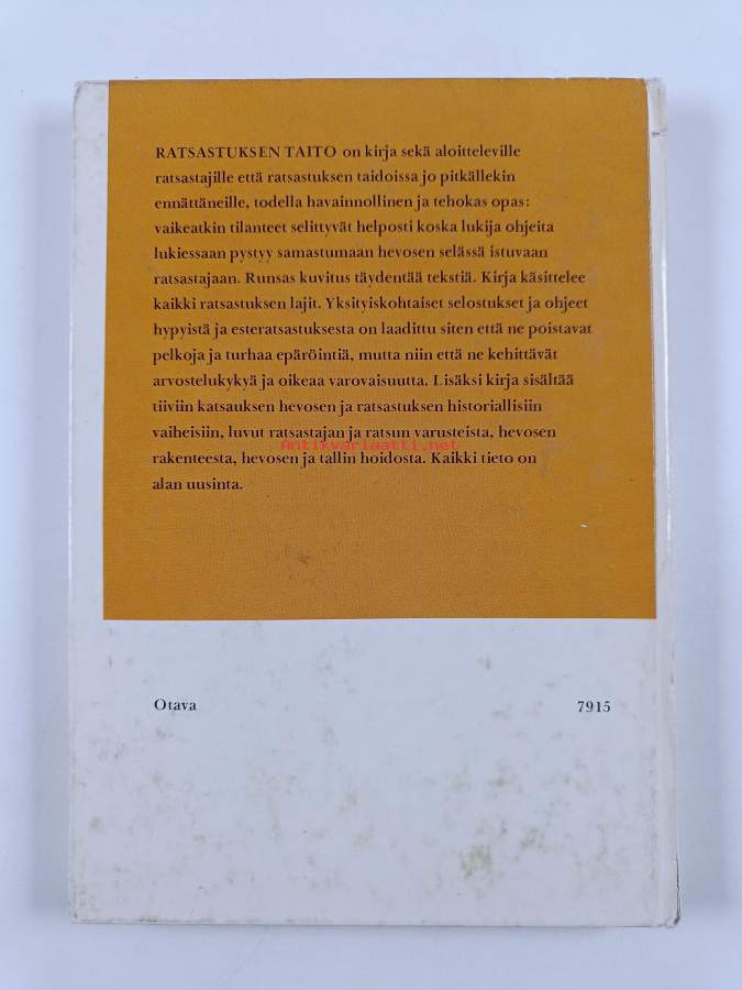 Muu(t) tekijä(t): Ella Winblad von Walter, Kaija Borup ym.Alkuteos: Handbok för ryttareAsiasanat: ratsastus, kouluratsastus, esteratsastus, hevonen ; hoito, hevonen ; valmennus