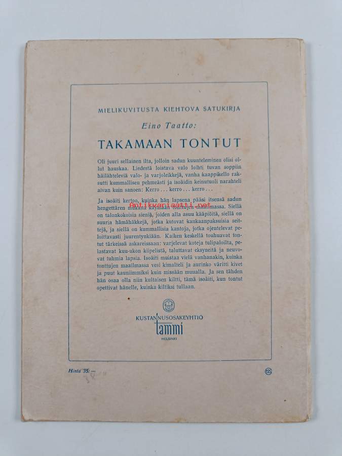Tyydyttävä. Pientä kulumaa kansissa, pientä repeämää selkämyksessä