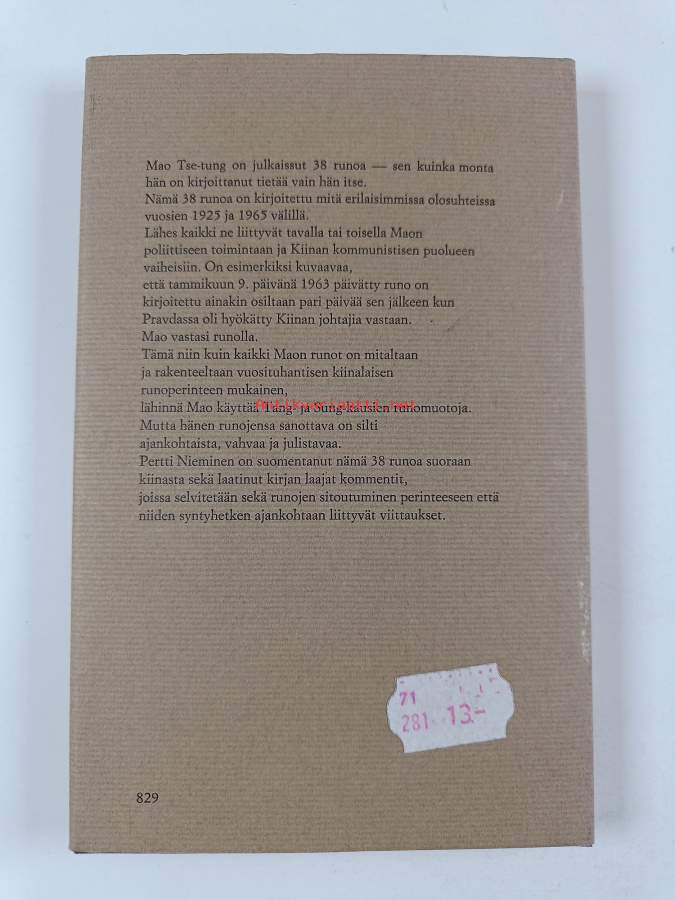 Erinomainen. Takana vanha hintalappu. Kansipaperin kunto: pienoista käytön jälkeä