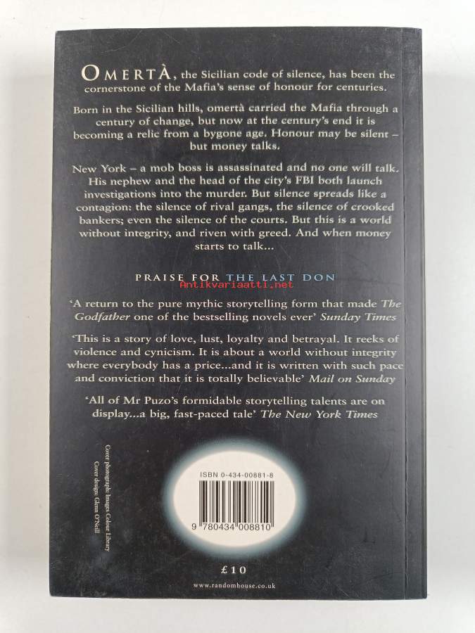 Omertà - vaikenemisen laki, 2000. 1.p. Kivikova kirja kivikovasta maailmasta, jossa tehdään rahaa murhaamalla, kiristämällä ja kaikin mahdollisin laittomin keinoin.