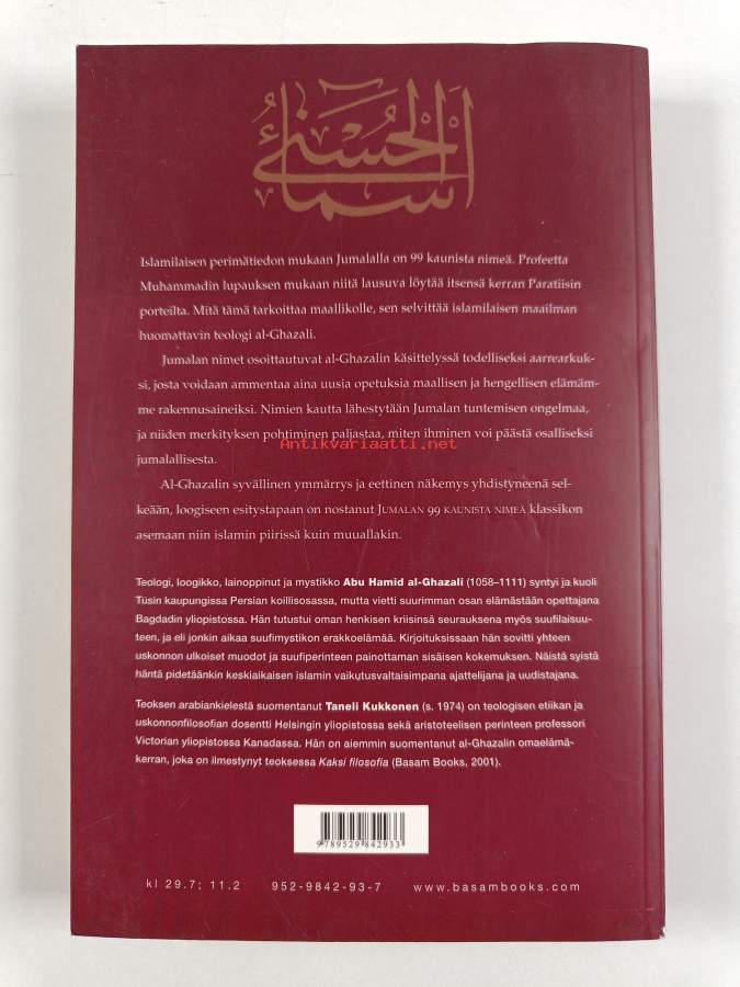 Muu(t) tekijä(t): Taneli KukkonenAlkuteos: Al-maqsad al-asnâ fî sharh asmâ'Allâh al-husnâAsiasanat: Jumala, islam, mystiikka, jumalakäsitykset, teologia, sufilaisuus