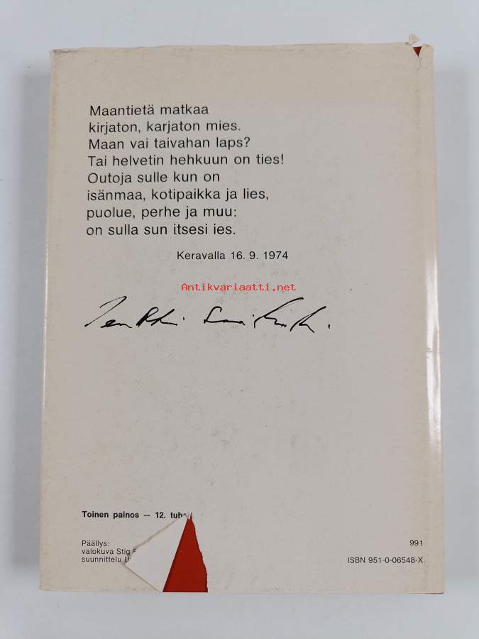 Hyvä. Tarkempi kuntoluokka: K3+ ; Selkämyksessä hieman vinoutta. Kansipaperin kunto: joitain repeämiä/kulumaa