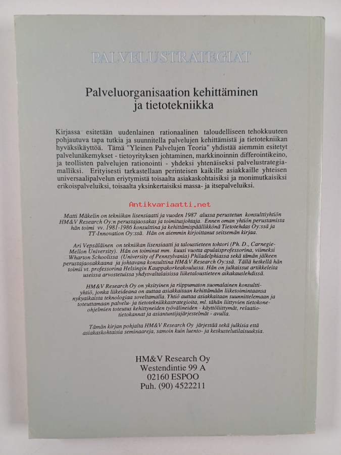 Muu(t) tekijä(t): Ari VepsäläinenMerkinnät: omistajamerkintäAsiasanat: palvelut, organisaatio, atk, palveluelinkeinot
