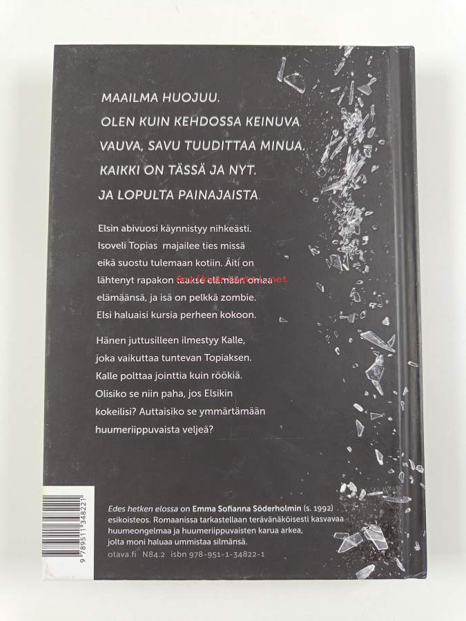 Erinomainen. Tarkempi kuntoluokka: K4+ ; Pienoista kulumaa kansissa, aivan pienoista kolhua selkämyksen kulmissa, takana hintalapun jäämää, edessä hintalapun jäämää