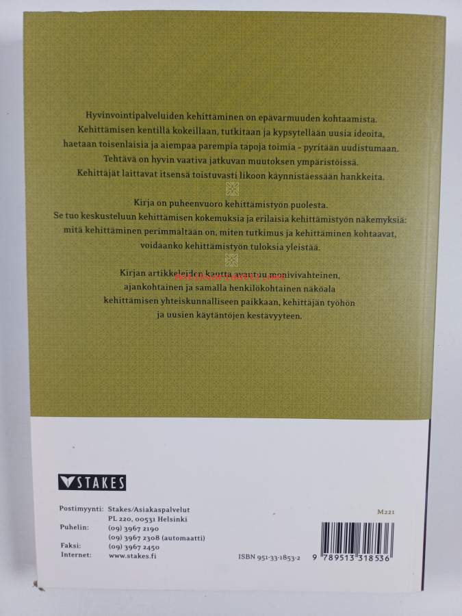 Muu(t) tekijä(t): Vappu Karjalainen, Riitta Seppänen-JärveläAsiasanat: tutkimus, palvelut, arviointi, kokemukset, kehittäminen, verkostot, peruspalvelut, suunnittelu, prosessit, terveydenhuolto, sosiaalihuolto, sosiaalipalvelut, henkilöstökoulutus, hyvät käytännöt, asiantuntijuus, sosiaaliala, prosessiarviointi