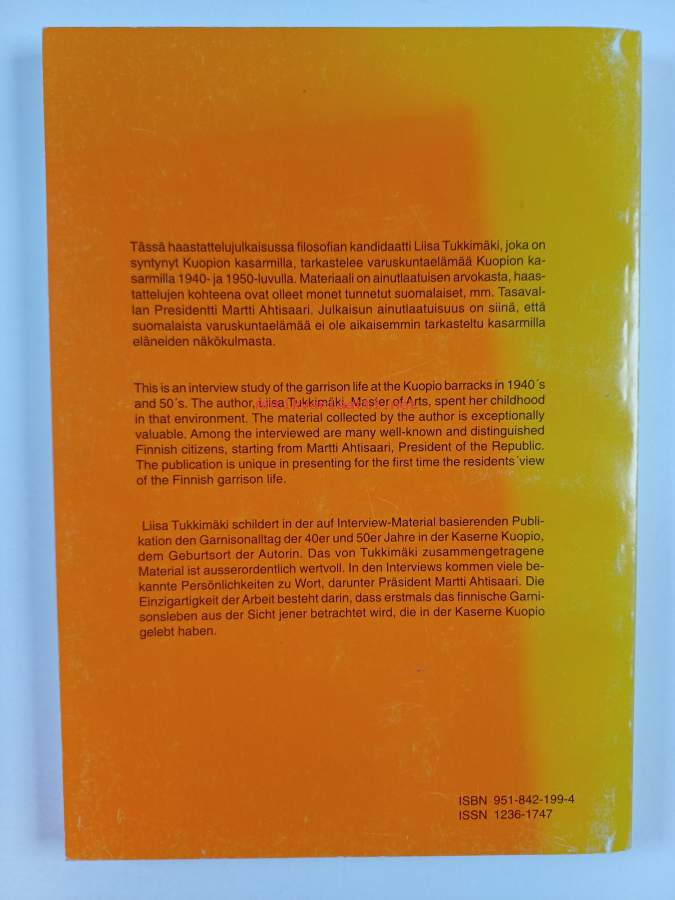 Sarja: Snellman-instituutin arkistojulkaisu 1998, 1Asiasanat: muistelmat, historia, varuskunnat, kasarmit