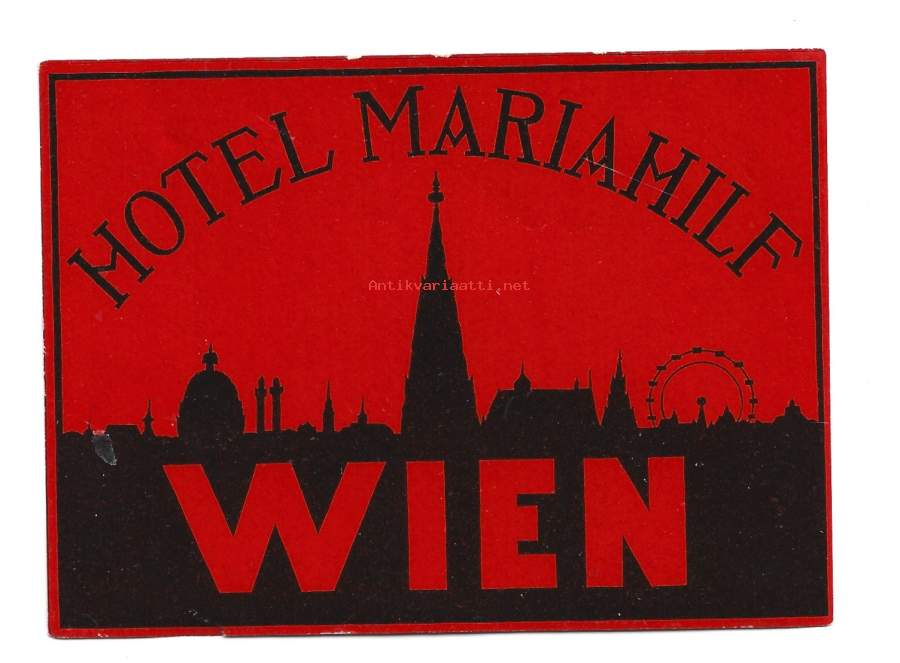 Hotel Mariahof Wienvanha hotellimerkki , matkalaukkumerkki hotellietiketti matkalaukkuetiketti