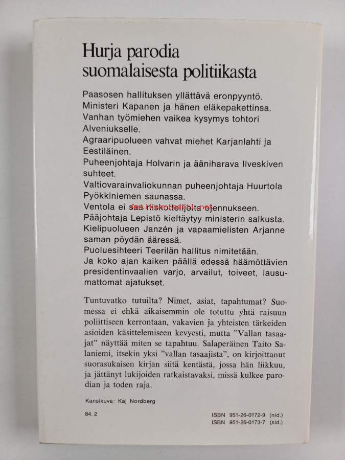 Hyvä. Selkämyksessä vinoutta. Kansipaperin kunto: pienoista kulumaa reunoilla, muuten erinomainen