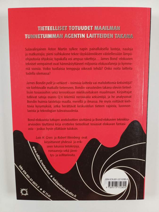 Muu(t) tekijä(t): Robert Weinberg, Mari HyypiäAlkuteos: The science of James Bond : from bullets to bowler hats to boat jumps, the real technology behind 007's fabulous filmsAsiasanat: keksinnöt, elokuvat, tekniikka, laitteet