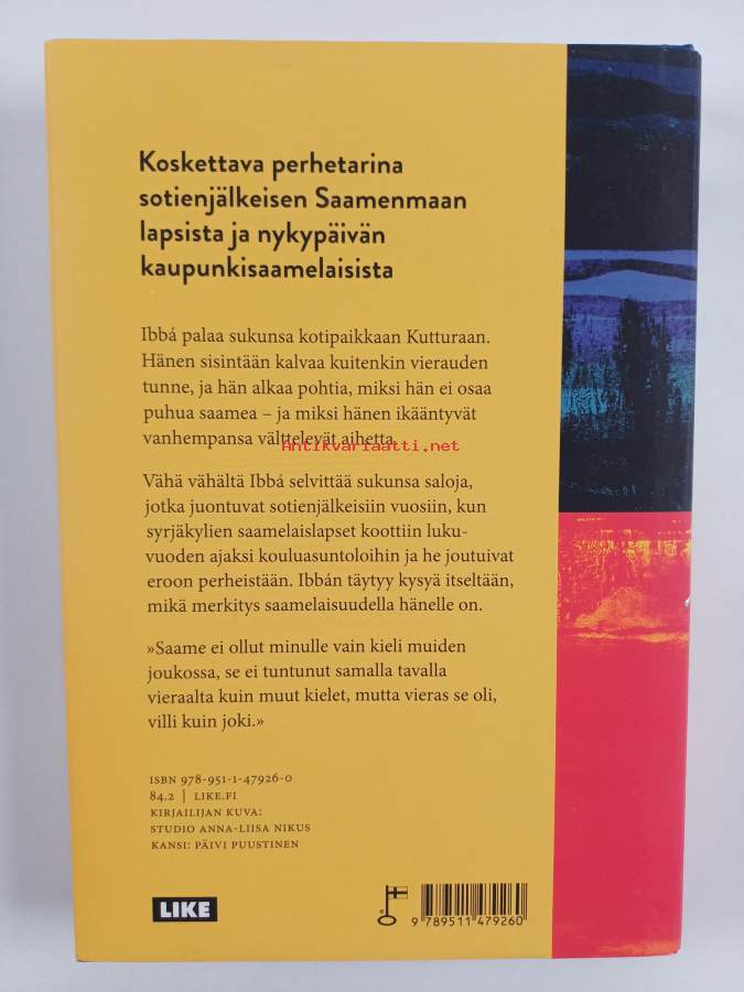 Asiasanat: luonto, Tampere, saamelaisuus, Lappi, identiteetti, 1950-luku, 2010-luku, perheromaani, koskettava, nykypäivä, Saamenmaa, kielen katoaminen, koulumajoitukset, sotienjälkeinen Suomi, sukupolvitarina