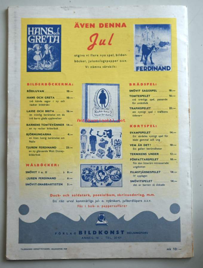 Jul-Lottan 1939 jultidning utgiven till förmån för Lotta-Svärd i södra nyl. skyddskårsdistr