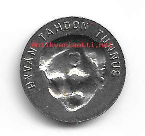 Opintorahastoyhdistyksen tuki hopean värinen / Hyvän tahdon tunnus - neulamerkki rintamerkki takana teksti "hYVÄN TAHDON TUNNUS"